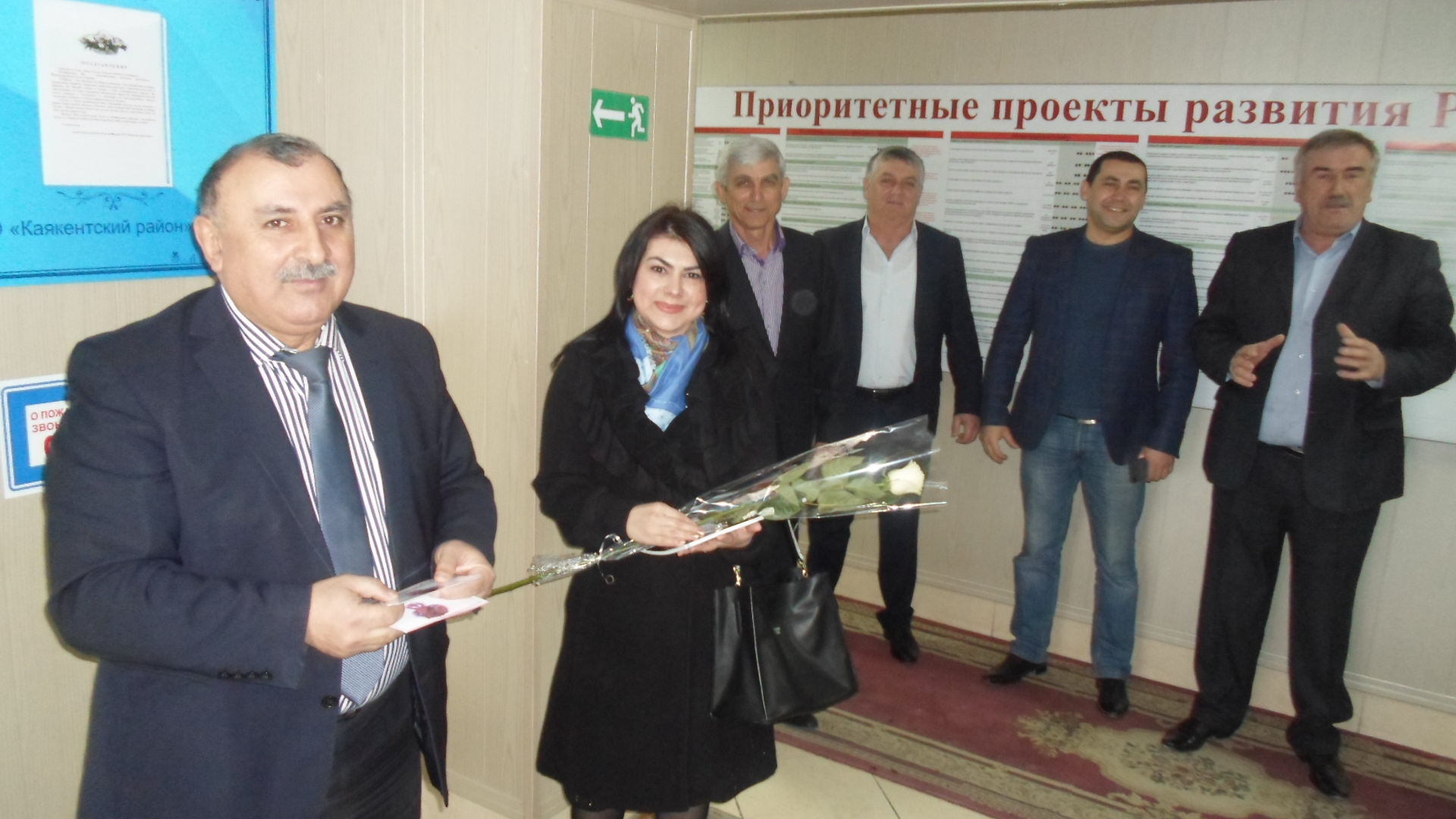 Сегодня, 7 марта 2017 года, накануне Международного женского дня коллектив мужчин Администрации и Собрания депутатов МР «Каякентский район» перед началом рабочего дня встретили у входа на работу всех своих сотрудниц и тепло поздравили с наступающим праздником 8 марта.