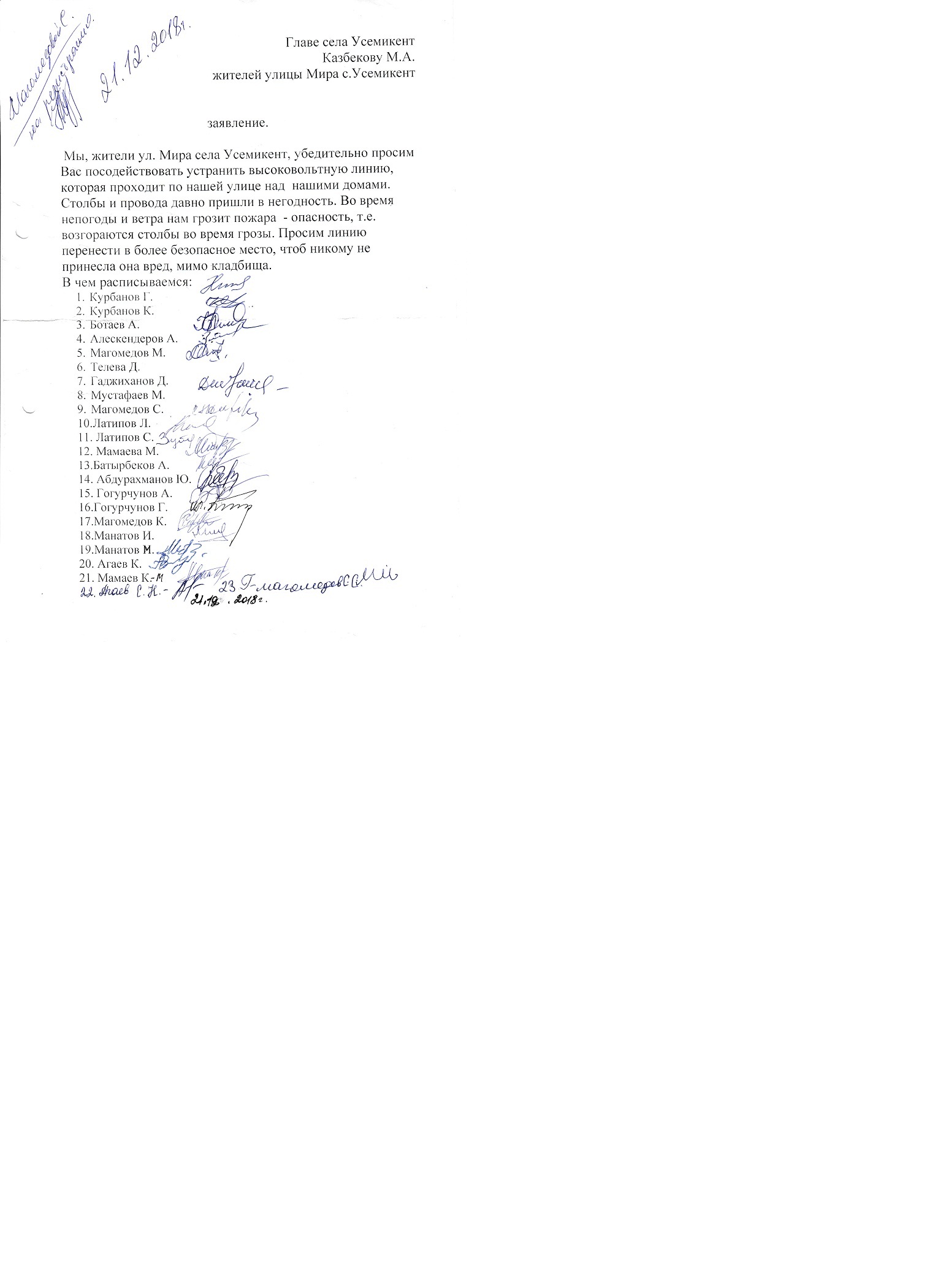Обращение жителей села