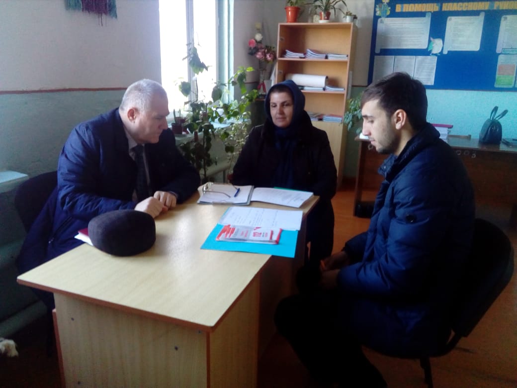 21 февраля 2019г специалисты аппарата Антитеррористической комиссии с участием заместителя главы МР «Каякентский район» по общественной безопасности Алациева Д.М. провели выездную встречу с заместителем директора по воспитательной работе МКОУ «Дружбинская СОШ». В ходе встречи было изучено организация работы МКОУ «Дружбинская СОШ» по следующим направлениям: