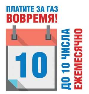 Оплату необходимо произвести за потреблённый газ до 10 числа. Неоплата или неполная оплата потребленного газа в течение двух месяцев является основанием для приостановления газоснабжения. У некоторых злостных неплательщиков сумма долга за газ исчисляется десятками и сотнями тысяч рублей. В связи со сложившимися обстоятельствами неблагонадёжные потребители имеют большую вероятность остаться без газа.