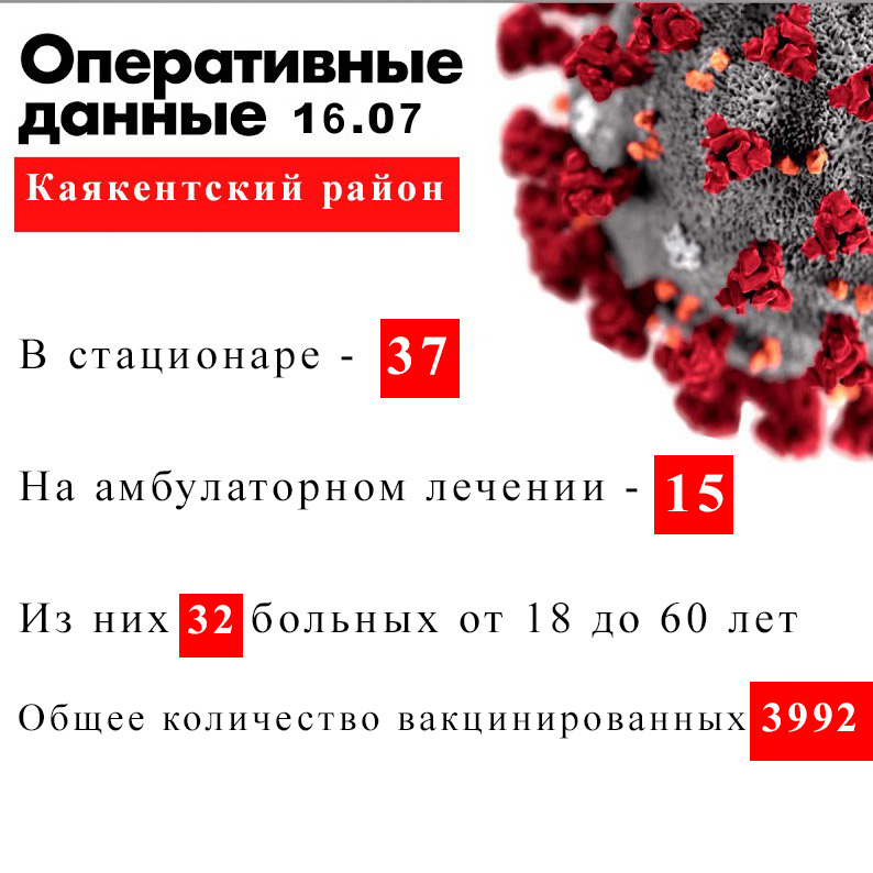 Оперативные данные об эпидемиологической ситуации в Каякентском районе на 16 июля 2021г.