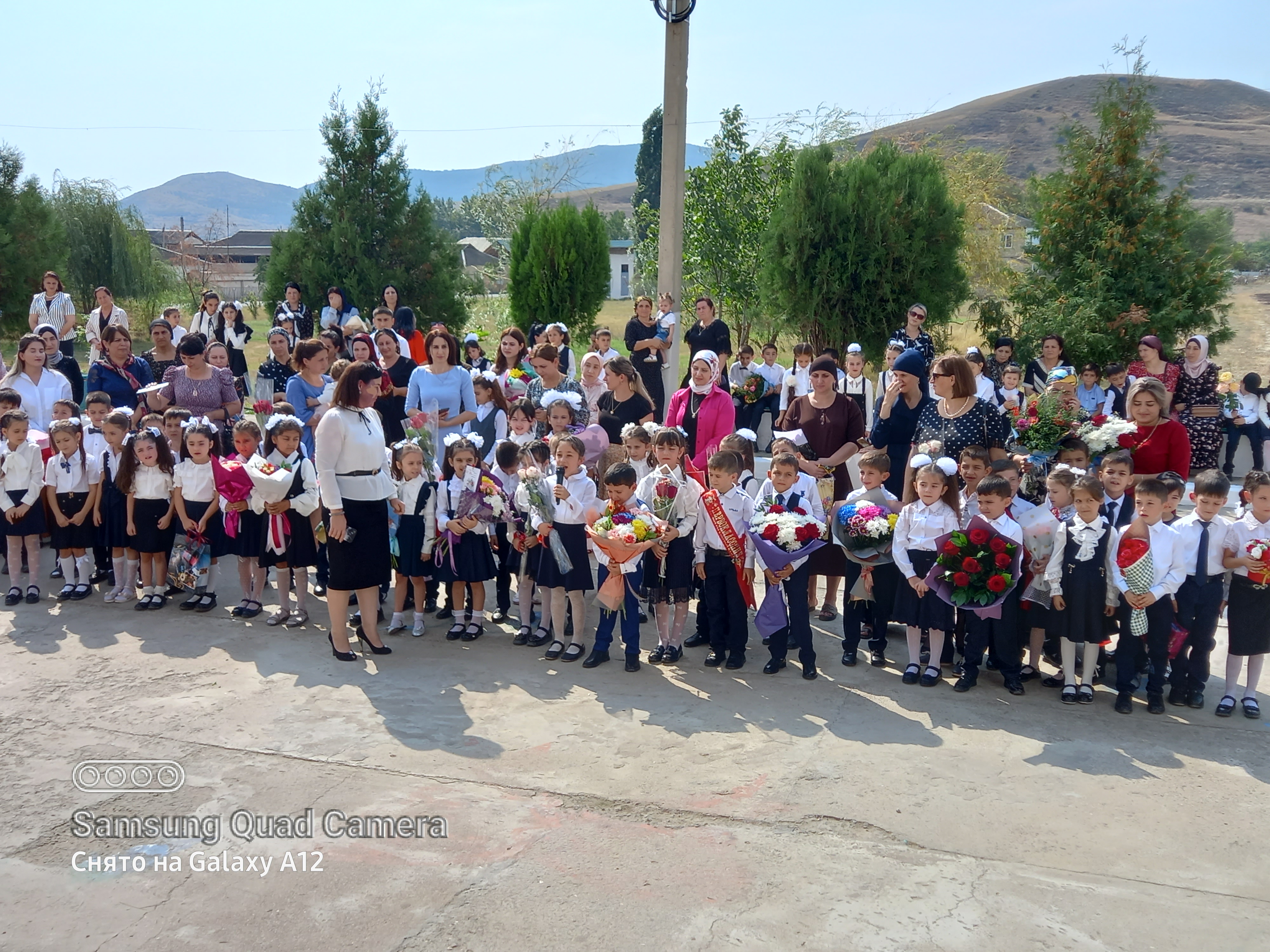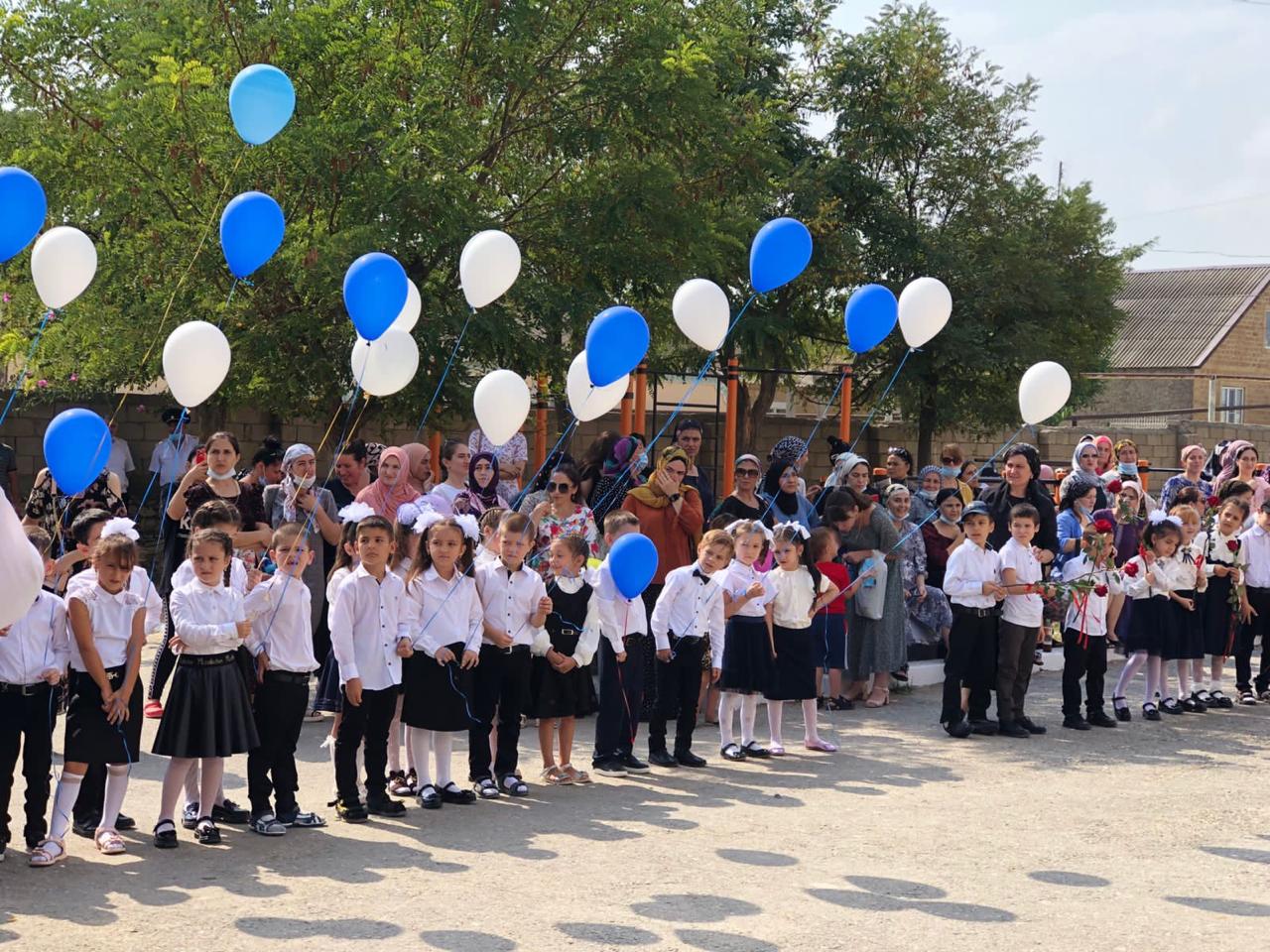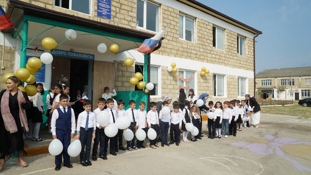 Поздравить детей с праздником - Днем знаний и ознакомиться с проведенными работами по проекту в Каранайаульскую школу Каякентского района приехали глава района Магомед Эльдерханов и первый заместитель министра по земельным и имущественным отношениям РД Хабиб Джанаев.