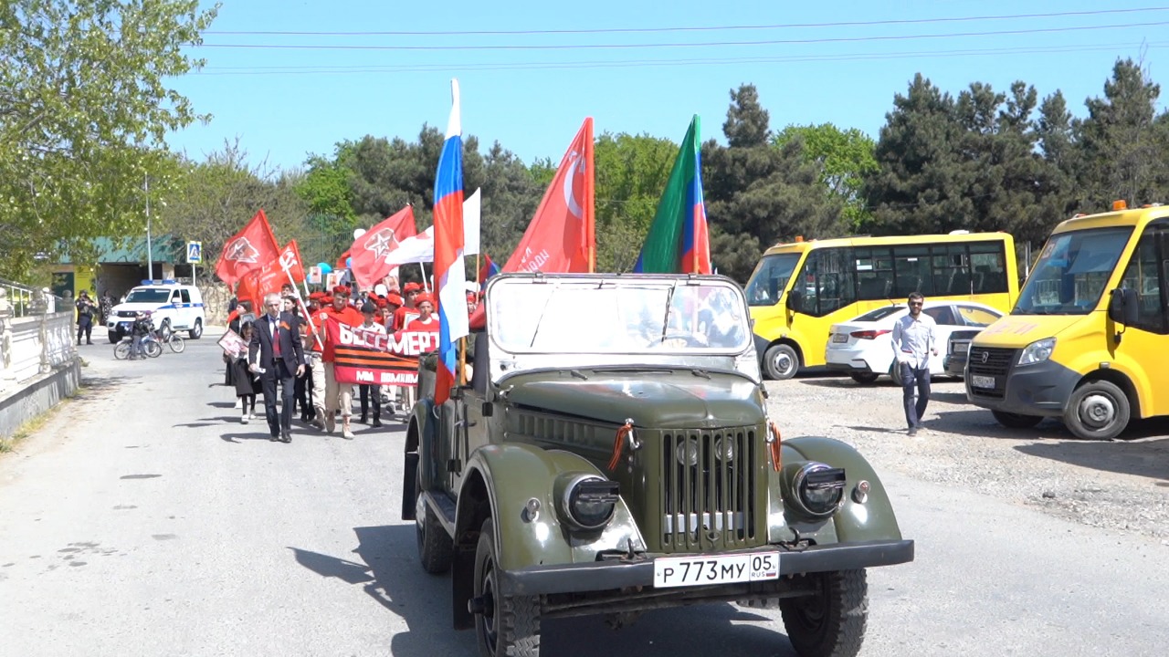 Акция началась у памятника И.В.Сталина с возложения венков, а затем колоны учащихся школ района направились к памятнику павшим в Великой Отечественной войне в селе Новокаякент. В ней приняли участие представители общественных объединений, органов власти, школьники и активные жители района.