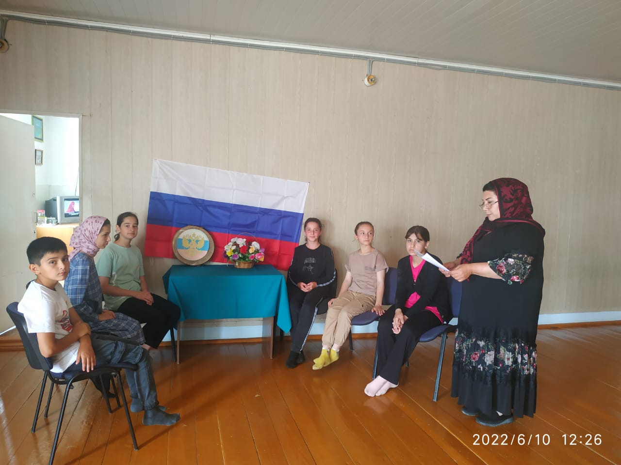 В преддверии праздника Дня России в Алходжакентском сельском Доме культуры провели беседу детьми на тему «Мы живём в России», посвященную Дню России.