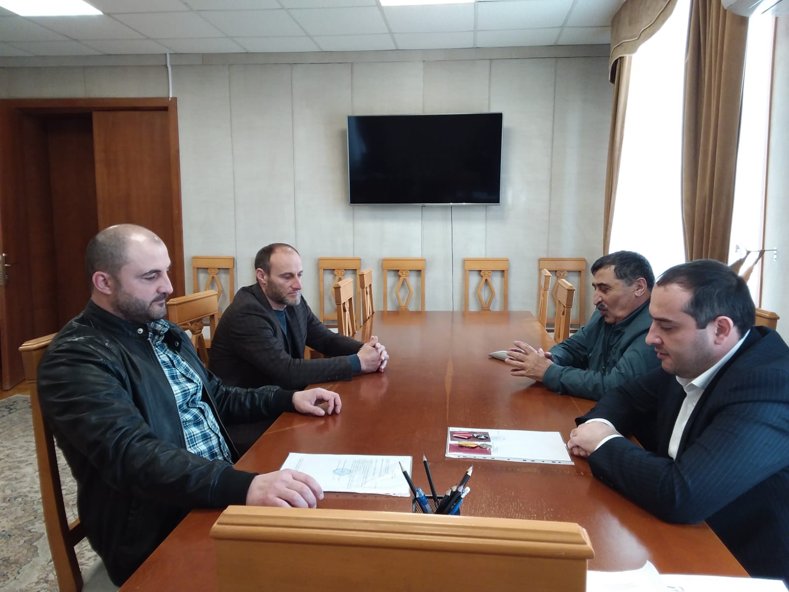 В администрации Каякентского района прошла встреча главы района Магомеда Эльдерханова с участником СВО Рамазановым Рустамом, жителем села Первомайское, прибывшим в родное село на краткосрочный отпуск после ранения. Встреча с военнослужащим прошла с участием депутата Народного Собрания РД Курбана Габибова.