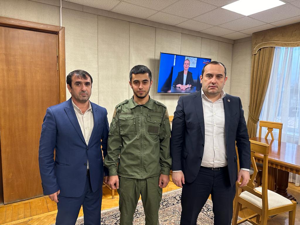 С участником СВО, жителем села Новокаякент, Самедовым Аскерханом встретились глава Каякентского района Магомед Эльдерханов и заместитель главы Артур Айгумов.