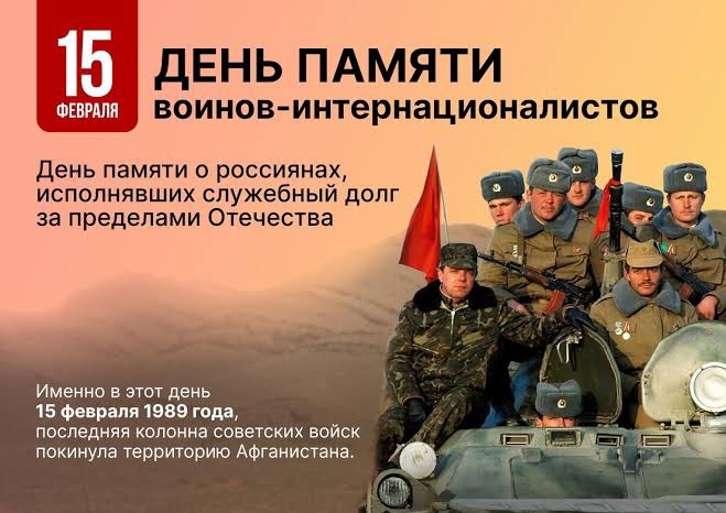15 февраля — особая дата в истории нашей страны. В этот день, в 1989 году, завершился вывод советских войск из Афганистан. Этот день стал символом мужества, стойкости и верности воинскому долгу.