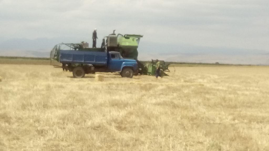 На уборке озимой пшеницы было обилье техники: машин, тракторов, комбайнов. Видно, что в ГУП «Каспий» настоящая страда и работа кипит. Чувствуется, что руководитель и работники предприятия относятся к работе с пониманием, только от них зависит благополучие коллектива и предприятия в целом. Когда мы выехали из пшеничного поля, я видел возвращавшихся с обеда рабочих. Я хотел задать вопрос, но К.Габибов опередил меня, как будто мысли читал, и сказал, что расходы по обеспечению обедом рабочих на уборке зерновых культур взяло на себя предприятие.