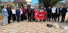 Учащиеся Новокаякентской СОШ вместе с куратором ПО, советником директора по воспитанию Рамазановой З.А. провели работы по благоустройству территории мемориального комплекса «Аллея Героев».
