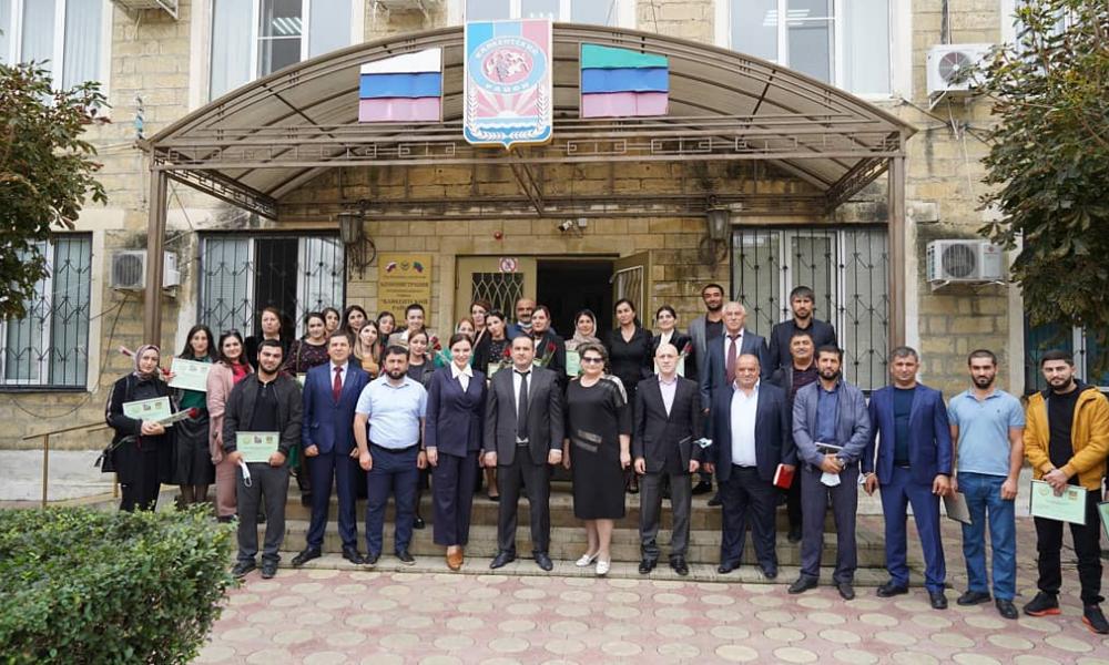 Продолжилось мероприятие церемонией вручения. Татьяна Беляева и Магомед Эльдерханов вручили сертификаты специалистам.  В завершение мероприятия руководитель района поблагодарил всех, кто принимал участие в реализации данного мероприятия и заверил, в том, что все специалисты, принявшие участие в программе «Земский учитель» и «Земский доктор» на территории Каякентского района, также будут обеспечены земельными участками.
