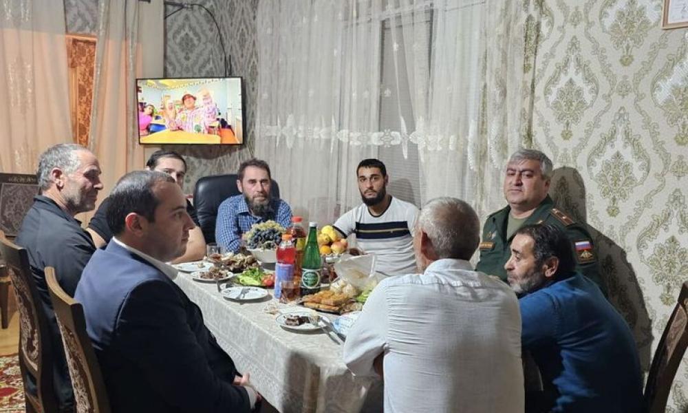 Глава района Магомед Эльдерханов поблагодарил военнослужащего за боевые заслуги от имени жителей района и от себя лично, отметив, что горд за своих земляков, за каждого, кто сегодня защищает интересы государства, борется с фашизмом, проявляя мужество и стойкость как и когда-то поступали их деды и прадеды. Глава района поинтересовался нуждается ли семья в решении бытовых проблем, рассказал о поддержке оказываемой республикой и районом семьям мобилизованных.