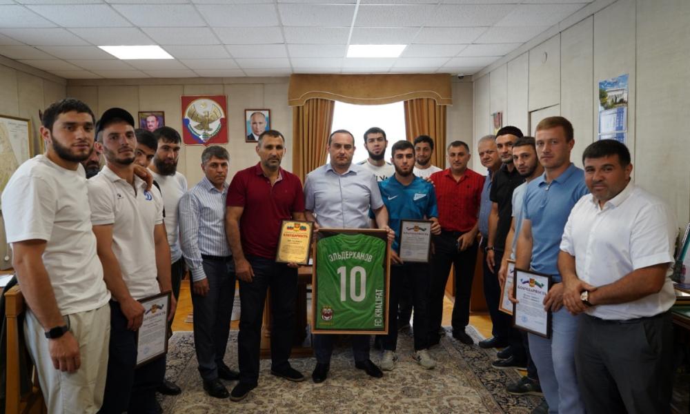 Сегодня глава Каякентского района провел чествование победителей любительской футбольной лиги среди команд клубов второго дивизиона сезона 2021-2022 Дагестана
