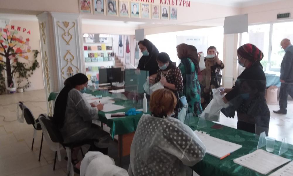 Коллектив дошкольного образовательного учреждения «Чебурашка» во главе с руководителем Маяханум Айгумовой организованно пришел проголосовать на участок 0669 в первый же день голосования.