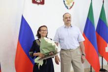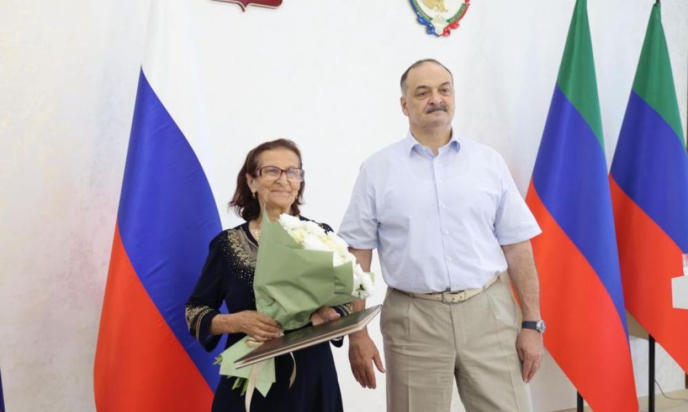 Магомед Эльдерханов поздравил учителя родного языка Новокаякентской СОШ Айшу Ханаевну Курбанову с высокой государственной наградой