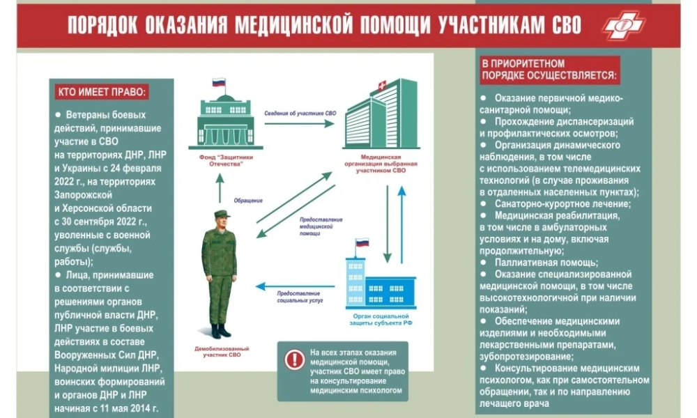 Медицинская помощь участникам СВО: бесплатно, вне очереди, на всей территории РФ