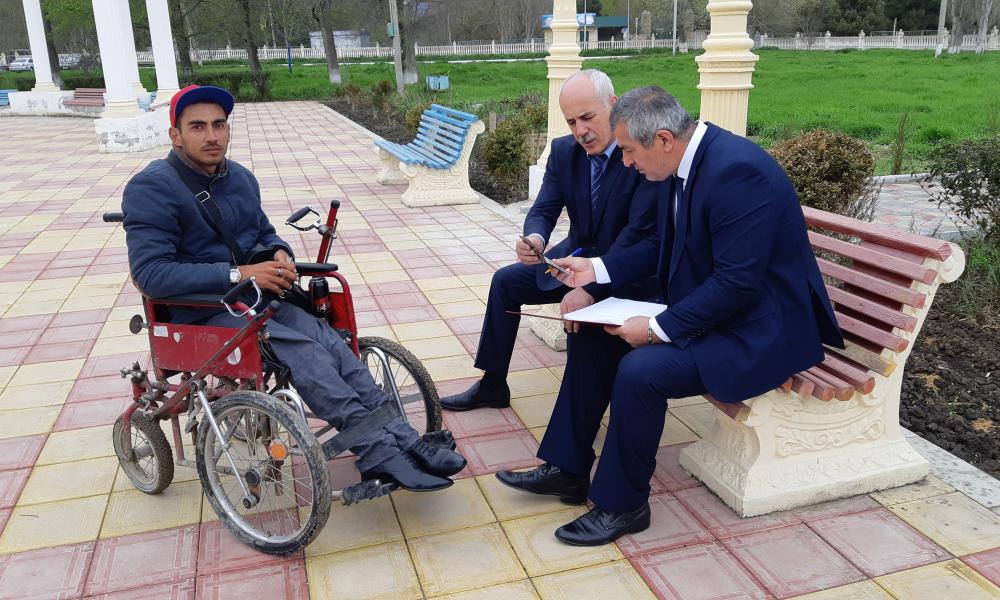 Шихмайсуров Тимур из с. Новокаякент обратился за помощью оказать материальную помощь, как инвалиду колясочнику. Глава района поручил обследовать жилищно – бытовые условия обратившегося с выездом на место для оказания материальной помощи.
