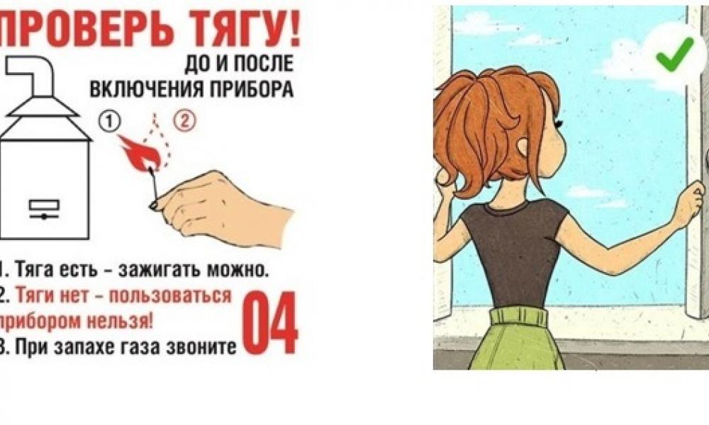 – проверяйте тягу в дымоходах и вентиляции до начала работы газовых приборов;