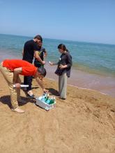 произведен отбор воды на море для лабораторных исследований.