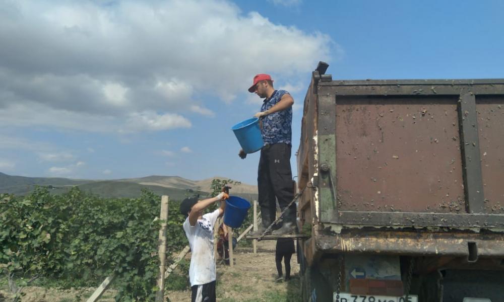 Уборка винограда в Каякентском районе.