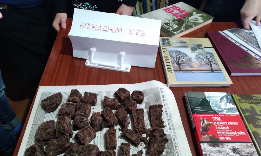 В материалах выставки, читателям представлены книги о подвигах, совершенных ценой человеческой жизни и о людях, которые проявили мужество и бесстрашие. На мероприятии была проведена Акция "Блокадный хлеб".