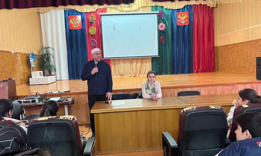 Сегодня 4 декабря 2025 года состоялась встреча обучающихся 7–8 классов МКОУ «Каякентская СОШ №1 им. Алибекова М.М.» со специалистом КДН и ЗП Кадиевой Кумсият К., председателем имамов Каякентского района Насрудиновым Салманом А., Раджабовым Мухаммадом – руководителем ОП по ЮТО, посвященная вопросам «Гармоничные отношения», безопасности детей в сети Интернет, защите от буллинга и профилактике экстремизма.
