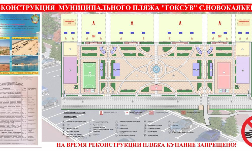 Село Новокаякент расположен прямо на берегу Каспийского моря. Проект реконструкции предусматривает создание современных спортивных площадок, детского спортивного комплекса, будут установлены новые скамейки и навесы для отдыха, урны, реконструируют кабины для переодевания и установят душевые, а также будет парковка для автомашин шириной 15 метров и длиною 300 метров. Таким образом, муниципальный пляж станет излюбленным местом отдыха для жителей района, гостей, а также туристов.