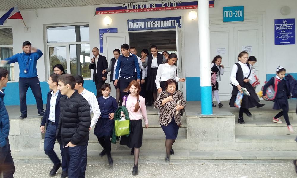 Согласно Плана основных мероприятий администрации района в области ГО, предупреждения и ликвидации ЧС, обеспечения пожарной безопасности и безопасности людей на водных объектах на 2017 год провели учебные тренировки по эвакуации детей и персонала при угрозе возникновении чрезвычайной ситуации в Дружбинской СОШ и детском саду селения Дружба. На учебной тренировке в школе приняли участие 433 детей и 58 работников, в детском садике - 128 детей и 32 работников. Учебные цели тренировок достигнуты. Эвакуация прошла согласно Плана эвакуации.