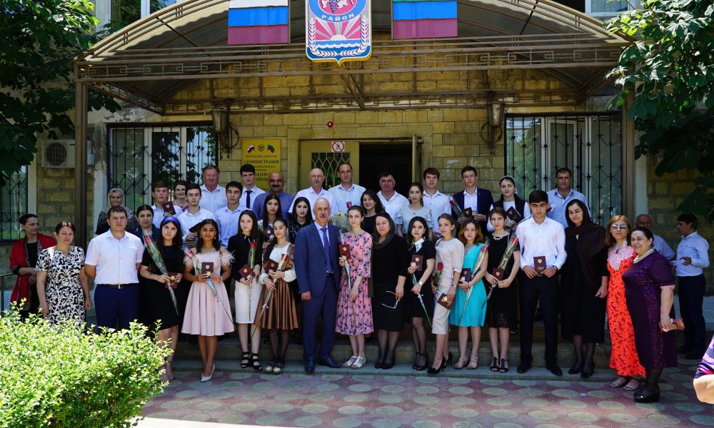 Обращаясь к медалистам Магомедэмин Гаджиев отметил, что завершился важный этап в их жизни – школьные годы. Эти награды стали знаком признания ученического труда на государственном и общественном уровне. «Дорогие выпускники! Сегодня вы стоите на пороге взрослой жизни и принятия ответственных решений. Вам открыты все пути. Где бы вы ни учились, помните, что представляете свой родной район, свой народ. Ставьте перед собой цели, и смело добивайтесь их. Уверен, что через несколько лет вы, став специалистами в выбранном деле и вернувшись в родной район, внесете свой вклад в его развитие Главное - вы должны сохранить дух творчества и свою настойчивость. Трудитесь. Работайте над собой. И тогда успех непременно придёт к вам», - напутствовал глава района.