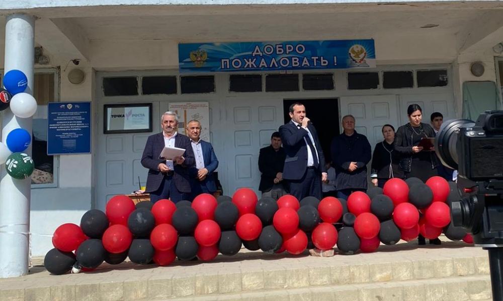 Покрывало с памятной доски в честь педагога, снимали Глава района Магомед Эльдерханов и директор школы Зайнутдин Казилов.