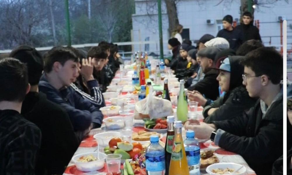 Накануне в шатре Рамадана, развернутом на территории спортивной школы села Новокаякент, Имам района Идрис Асадуллаев организовал коллективный ифтар.
