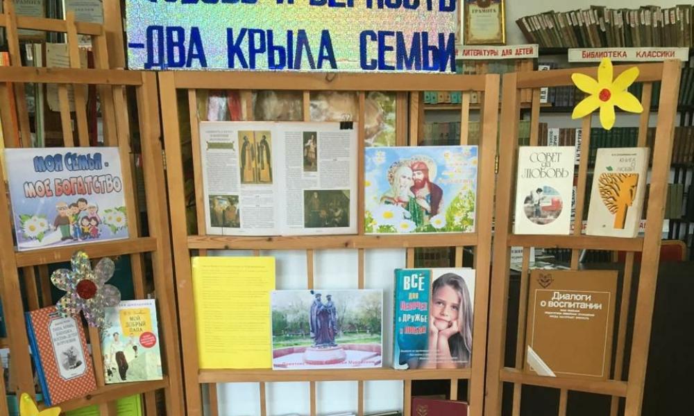 Работниками детской районной библиотеки к Дню семьи, любви и верности оформлена книжно-иллюстративная выставка «Любовь и верность – два крыла семьи».
