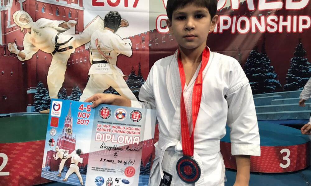 9 летний Рашид Гусейханов из села Алходжакент, 4 ноября стал вторым призером чемпионата мира по косики каратэ, которая проходила в Москве.
