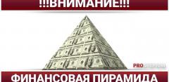 Финансовая пирамида (также инвестиционная пирамида) — способ обеспечения дохода участникам структуры за счёт постоянного привлечения денежных средств. Доход первым участникам пирамиды выплачивается...