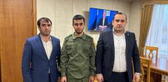Аскерхан приехал домой в краткосрочный отпуск, предоставленный за успешные боевые действия в зоне СВО, глава района встретился с бойцом перед его отъездом на передовую.