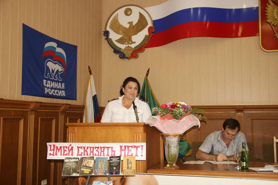 Хасайбат Валиева привела много примеров из ее личного контакта с наркоманами. На конкретных примерах показала механизмы вовлечения молодежи в процесс потребления и сбыта наркотических средств, наглядно продемонстрировала, как распознать человека, находящегося в наркотическом опьянении.