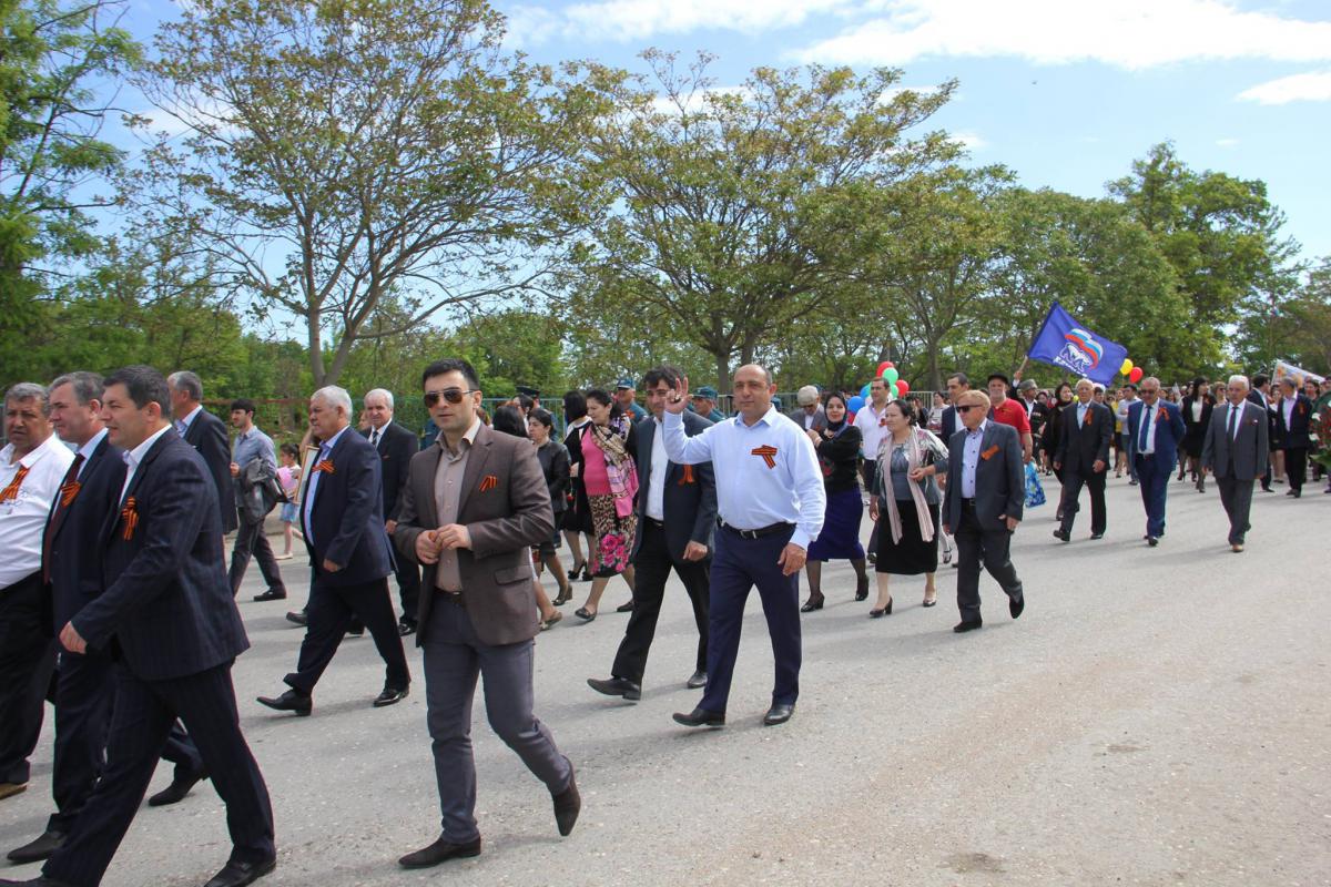 Торжество началось по традиции с праздничного шествия от привокзальной площади, где прошло возложение цветов памятнику И. В.Сталину. Далее праздничную колонну возглавили учащиеся Новокаякентской СОШ и прошли шествием до площади перед администрацией. Учащиеся, в рамках акции «Бессмертный полк» несли портреты своих прадедов, гирлянды цветов, воздушные шары с разноцветными флажками и транспаранты.
